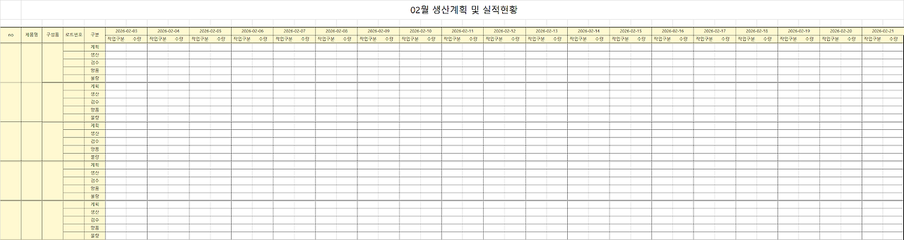 | no | 제품명 | 구성품 | 로트번호 | 구분 | 2026-02-03 | 2026-02-04 | 2026-02-05 | 2026-02-06 | 2026-02-07 | 2026-02-08 | 2026-02-09 | 2026-02-10 | 2026-02-11 | 2026-02-12 | 2026-02-13 | 2026-02-14 | 2026-02-15 | 2026-02-16 | 2026-02-17 | 2026-02-18 | 2026-02-19 | 2026-02-20 | 2026-02-21 | |||||||||||||||||||