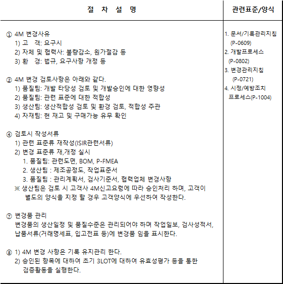 ⑧ 1) 4M 변경 사항은 기록 유지관리 한다.
