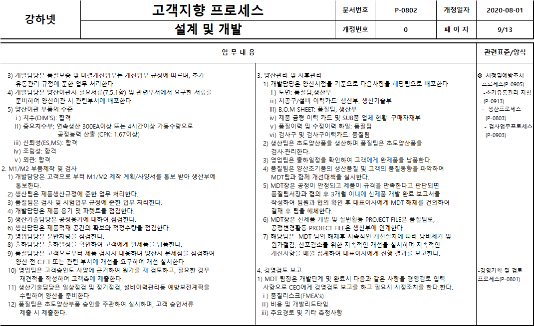 | 강하넷 | 고객지향 프로세스 | 문서번호 | P-0802 | 개정일자 | 2020-08-01 | ||||